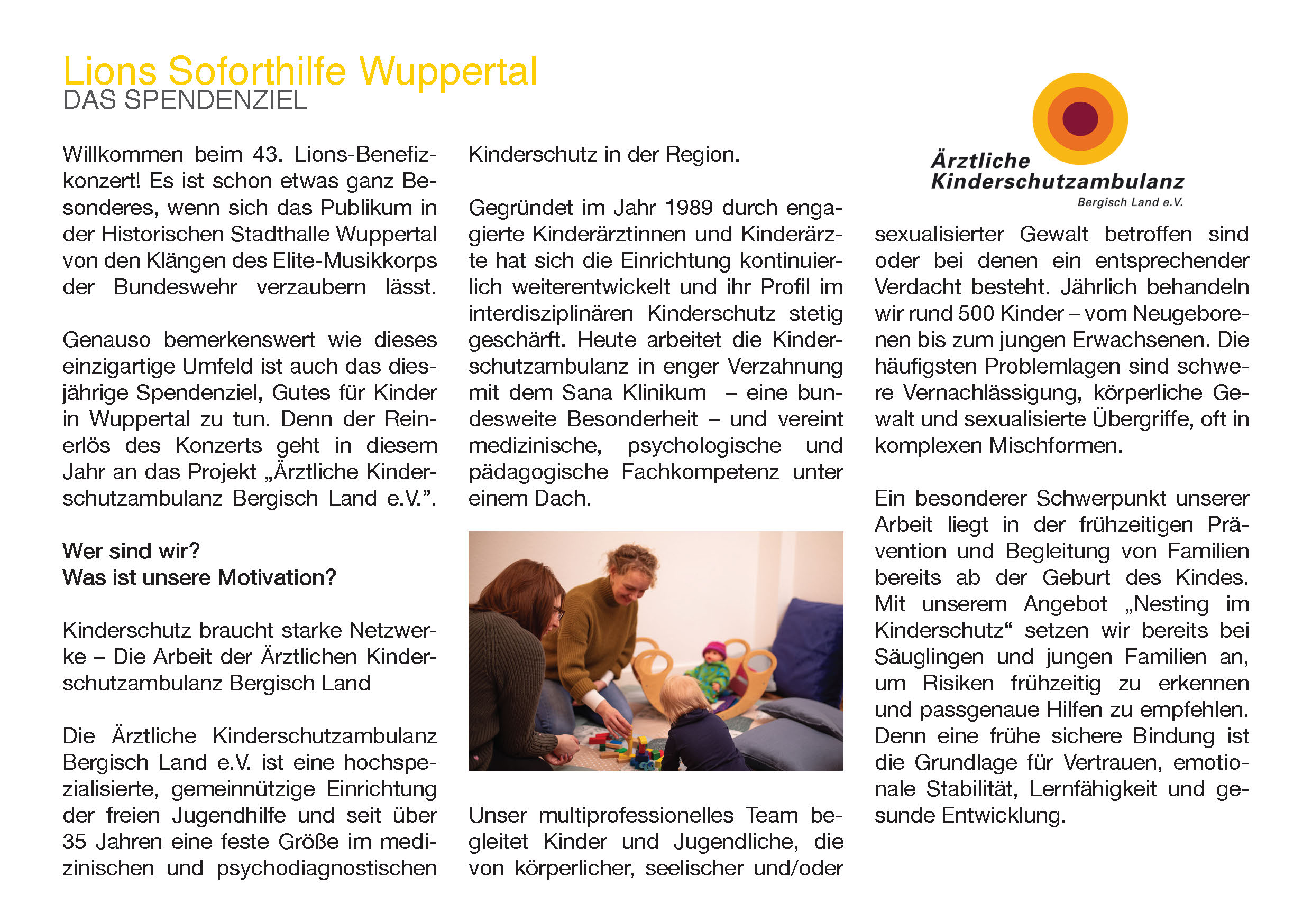 Im Jahr 2026 geht der Erlös an die Ärztliche Kinderschutzambulanz Bergisch Land e.V.