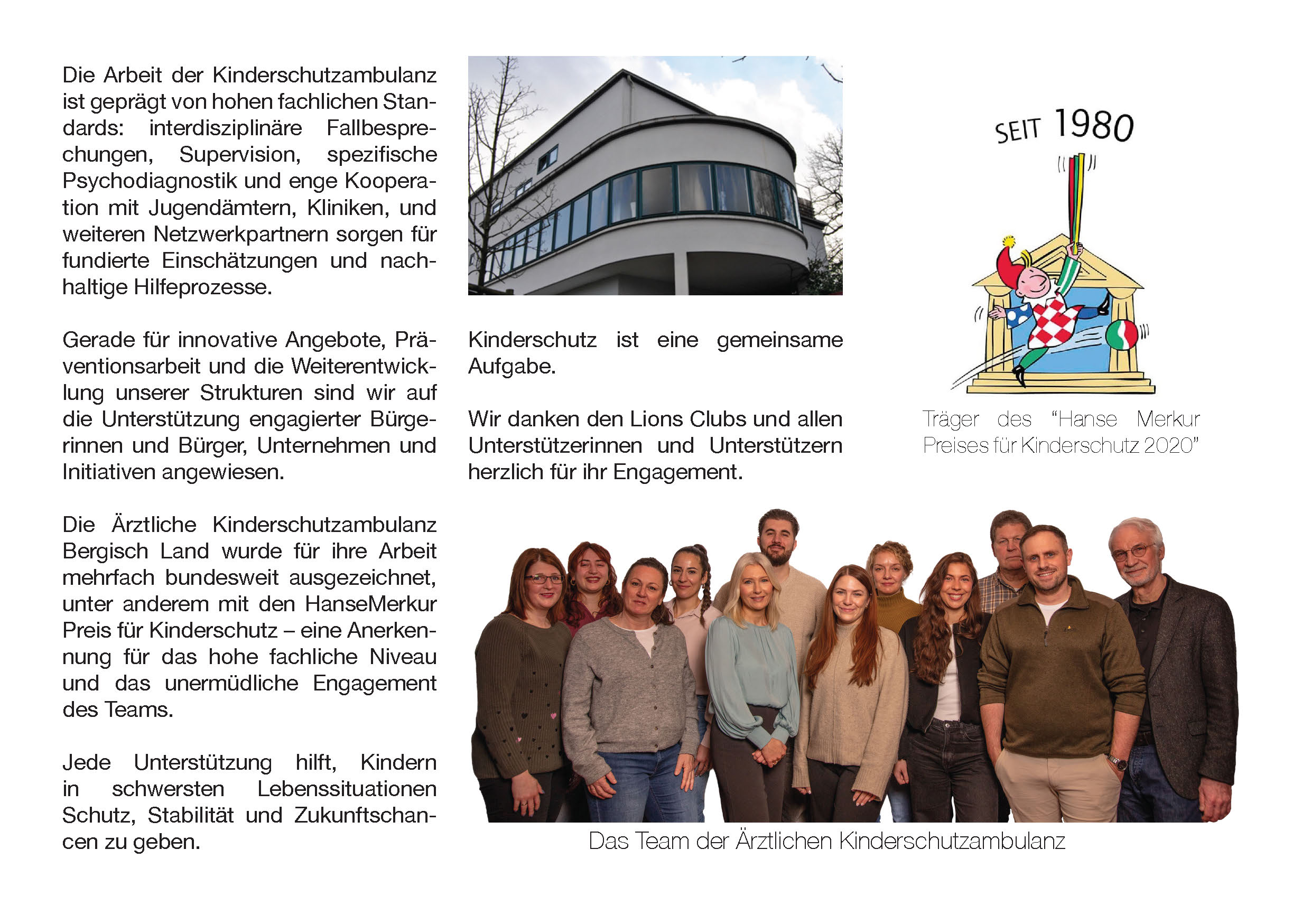 Die Ärztliche Kinderschutzambulanz Bergisch Land e.V. ist eine hochspezialisierte, gemeinnützige Einrichtung der freien Jugendhilfe und seit über 35 Jahren eine feste Größe im medizinischen und psychodiagnostischen Kinderschutz in der Region.