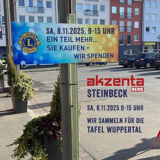 Am Samstag, den 8. November, sind wir vom Lions Club Wuppertal Schwebebahn wieder im Einsatz: Von 9 bis 15 Uhr sammeln wir beim akzenta Markt